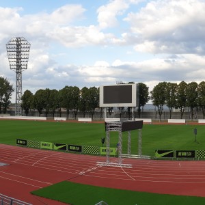 Starta konstrukcija ar LED ekrāniem.